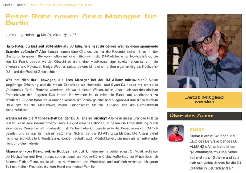 Daher beschloss ich, mich in dem 2024 gegründeten Berufsverband 'DJ Allianz' von Anfang an stark zu engagieren.